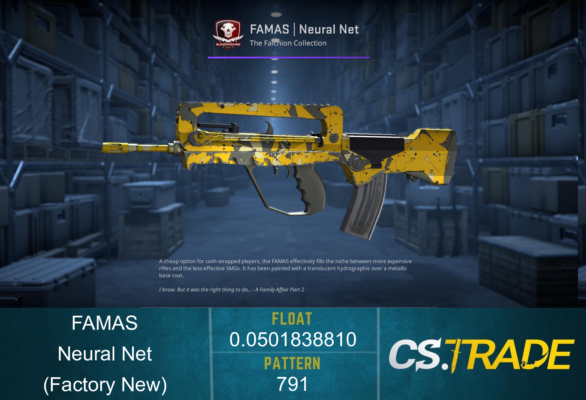 FAMAS | Neural Net finish style is Anodized Multicolored with finish catalog equal to 477. It's unique flavor text is: 'I know. But it was the right thing to do... - A Family Affair Part 2'.