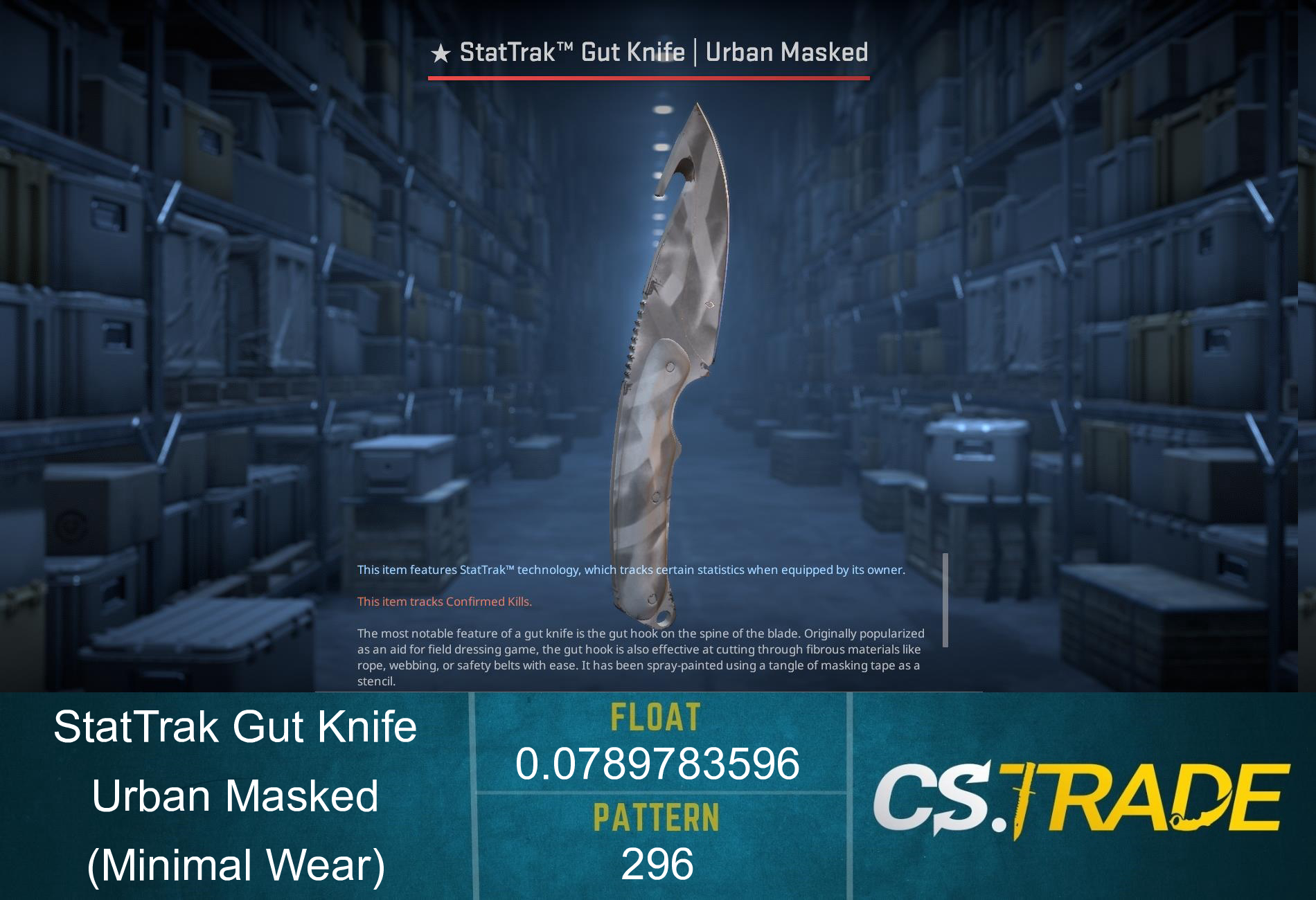Gut Knife | Urban Masked is an item of average liquidity. It may take some time to sell or trade it. Traders rates this skin at 4.60/5.0.