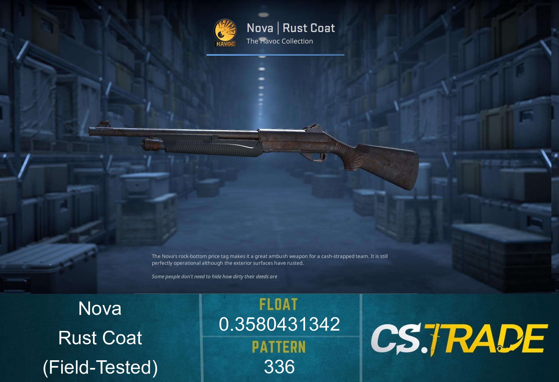 Nova | Rust Coat is an item of very low liquidity. It's hard to sell or trade. Traders rates this skin at 2.13/5.0.